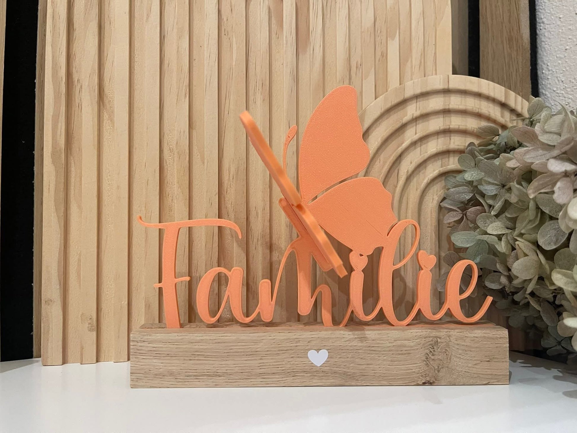 3D Druck Datei "Familie" mit Schmetterling. Die fertig gedruckte Datei kannst du perfekt zwischen zwei Klötzchen kleben.